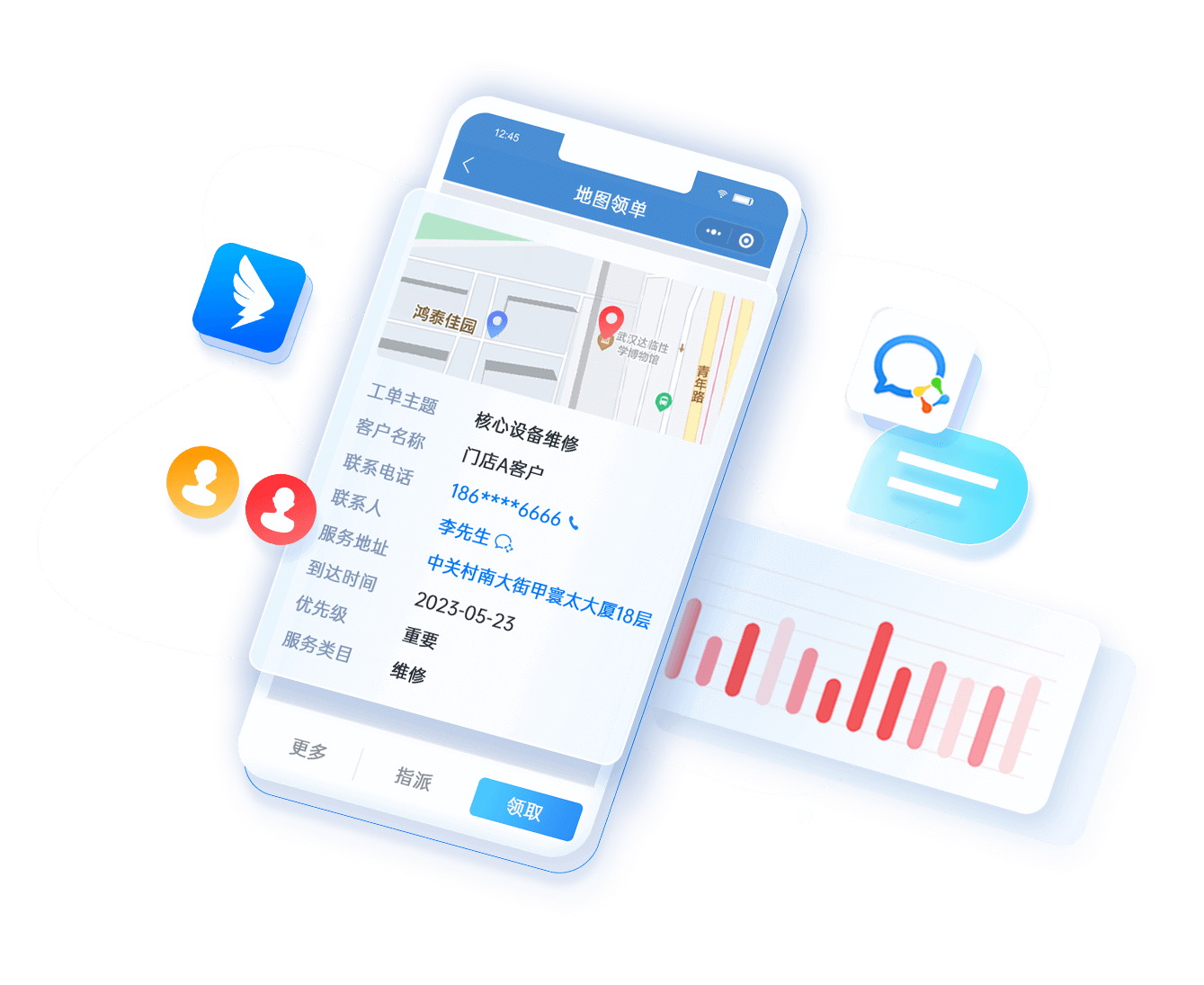 - 按區(qū)域/工單類(lèi)型/產(chǎn)品類(lèi)型進(jìn)行地圖派單、手動(dòng)派單和工單池?fù)寙?/li>